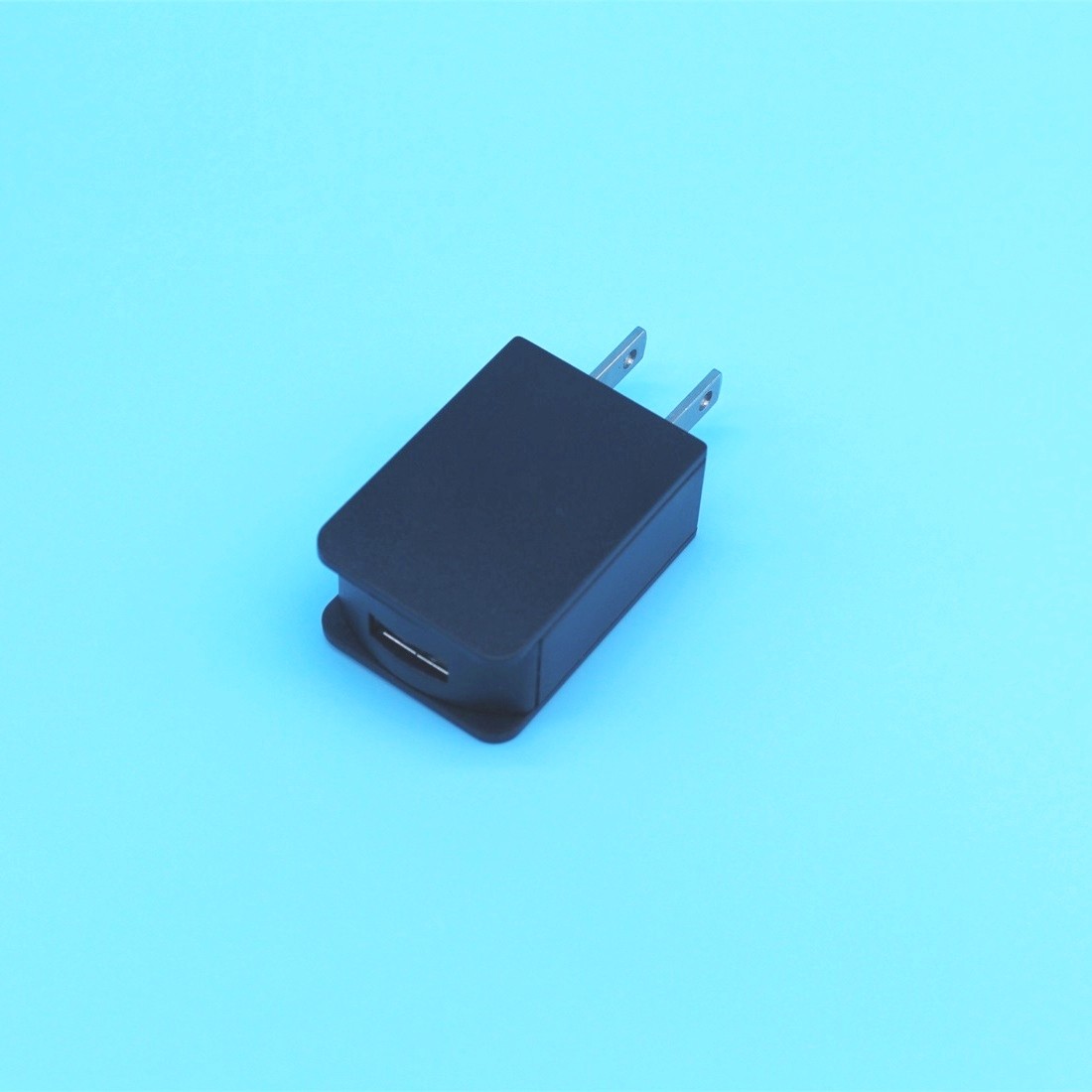 5V1A美规UL认证USB充电器,USB电源适配器。产品型号:JHD-AP006U-050100BB-2,输出电压5V,输出电流1A,最大输出功率6W,内置电子兼容防干扰线路,通过CB,PSE,UL,CUL,FCC,CE,CCC等认证,广泛应用于小家电、电子数码、IT通讯、安防监控、照明等。