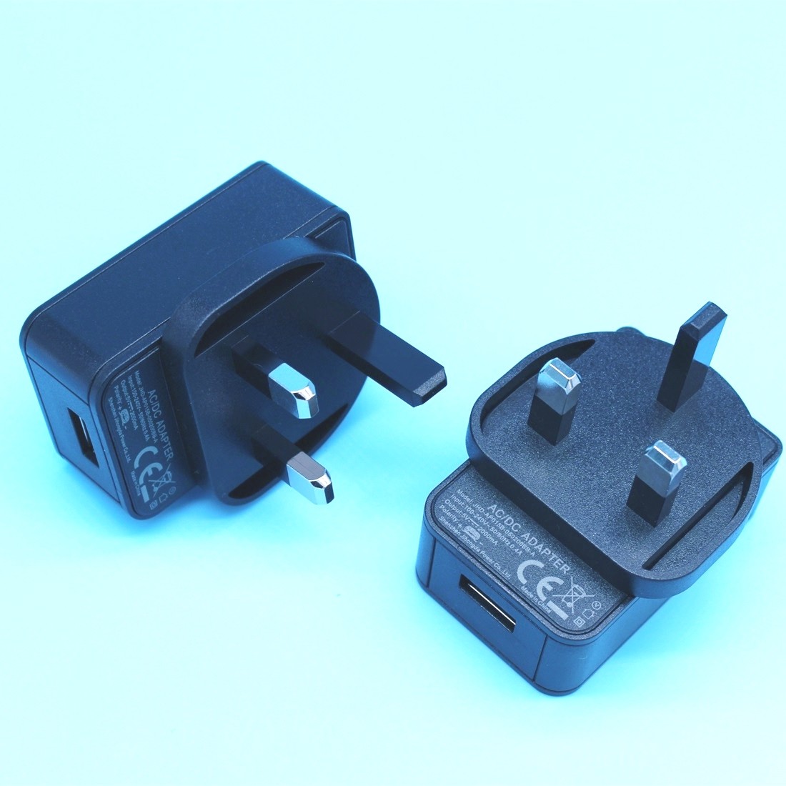 5V2A UK pin USB power adapter,5V2A UK plug USB charger; Model: JHD-AP015B-050200BB-A, output 10 watts,high efficiency,low loss,built in EMC/EMI filter, Safety Approval: CCC,PSE,UL,FCC,CB,GS-TUV,CE. widely used in the electronic digital,communication.